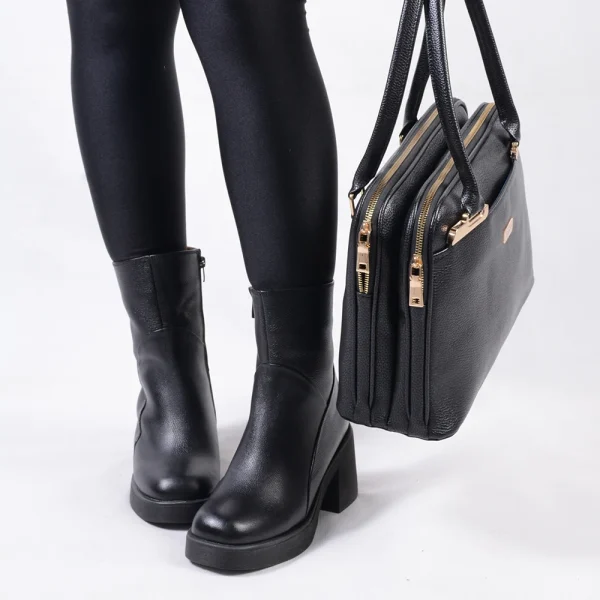 بوت پاشنه بلند چرم طبیعی زنانه، با رویه ای از چرم اصل گاوی و آستری از چرم بز و خز همراهی شیک و گرم در روز های سرد پاییز و زمستان خواهد بود. پاشنهي بوت چرم اصل زنانه با ارتفاع ۶.۵ سانتی به صورت پهن تولید شده تا استفاده از آن راحت تر باشد. برای داشتن استایلی شیک و جذاب تر با این بوت چرم پیشنهاد میشود از کت و پالتو های چرم طبیعی دراتی استفاده کنید. همچنین کیف های چرم نیز در کنار این بوت زیبایی استایل شمارا چندین برابر میکند.