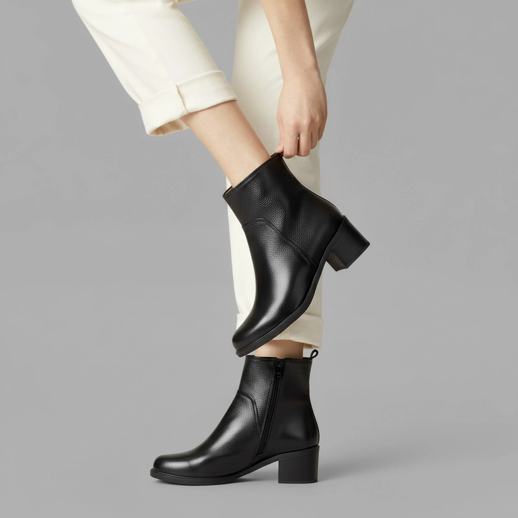 بوت پاشنه دار چرم زنانه