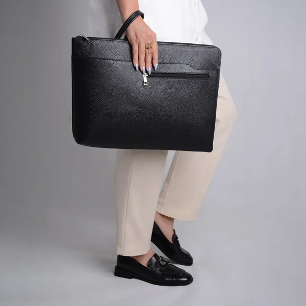 با ابعاد ۳۸×۲۸ سانتیمتر و وزن تنها ۵۶۰ گرم، حمل این کیف بسیار آسان است. طراحی آن به گونهایست که علاوه بر حفظ فرم، فضای کافی برای مدارک، اسناد، تبلت یا ابزار دیجیتال شما فراهم میکند. بند دستی کوچک این کیف امنیت و حمل کیف را برای شما آسان میکند