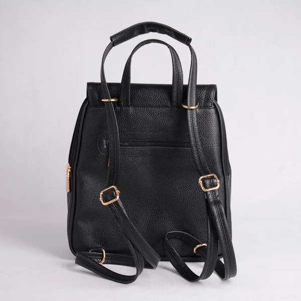 دارای یک بند دستی محکم و بندهای دوشی قابل تنظیم است که امکان استفاده راحت و متنوع را فراهم میکند. درب با قفل سگکی فانتزی، هم ظاهر کیف را جذاب کرده و هم امنیت وسایل را تضمین میکند.
