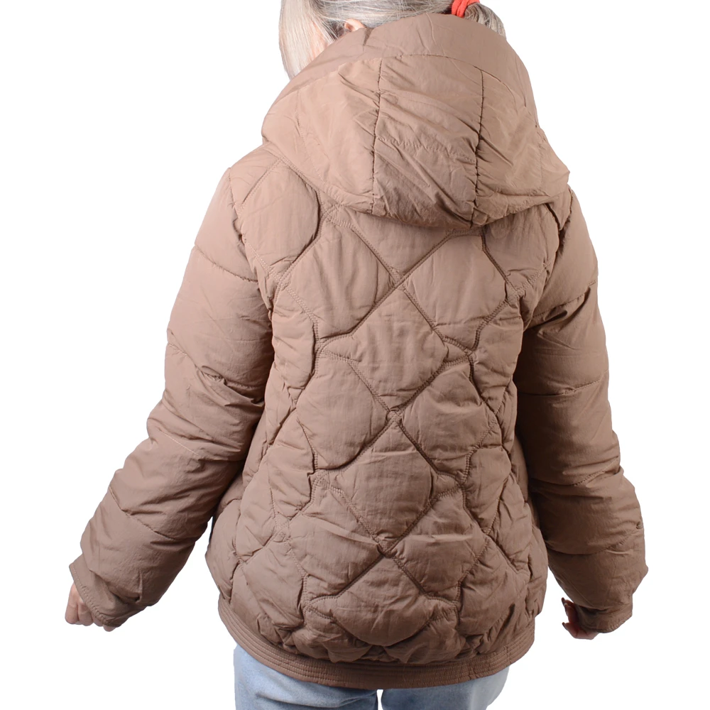 کاپشن کلاهدار نسکافهای، با استایلی اسپرت و کژوال یک آیتم جذاب برای روزهای سرد پاییز و زمستان که با رنگ خاص و کاربردی خود و طرح لوزی پارچه، جلوهای زیبا به استایل شما اضافه خواهد کرد. رویهای از جنس تیسی و آستر پشم شیشه، موجب شده تا ضدآب، سبک و گرم باشد. یقه ی بلند و کلاه دار، گت های سرآستین و دور کمر از نفوذ سرما جلوگیری می کند پس یک همراه عالی در روز های سرد برای شما خواهد بود. رنگ نسکافهای همراه با شلوار جین آبی یا قهوهای شکلاتی، در کنار بوت اسپرت چرم جیر شکلاتی یک استایل منحصر به فرد و خاصی را رقم میزند.