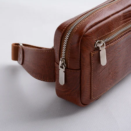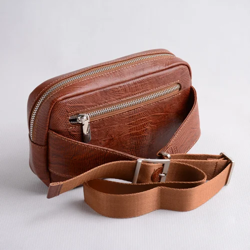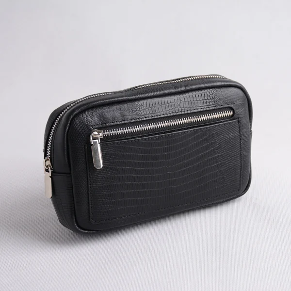 این کیف از چرم طبیعی گاوی با طرح لیزارد ساخته شده و با ابعادی جمعوجور (۲۱ در ۱۲.۵ سانتیمتر) طراحی شده تا بدون ایجاد مزاحمت، همیشه همراه شما باشد. رنگبندی کلاسیک مشکی و قهوهای، آن را برای استایلهای رسمی و روزمره ایدهآل میسازد. بند کمری قابل تنظیم آن، آزادی حرکت کامل را فراهم میکند و زیپ خارجی کیف، دسترسی سریع به اقلام کوچک را ممکن میسازد.