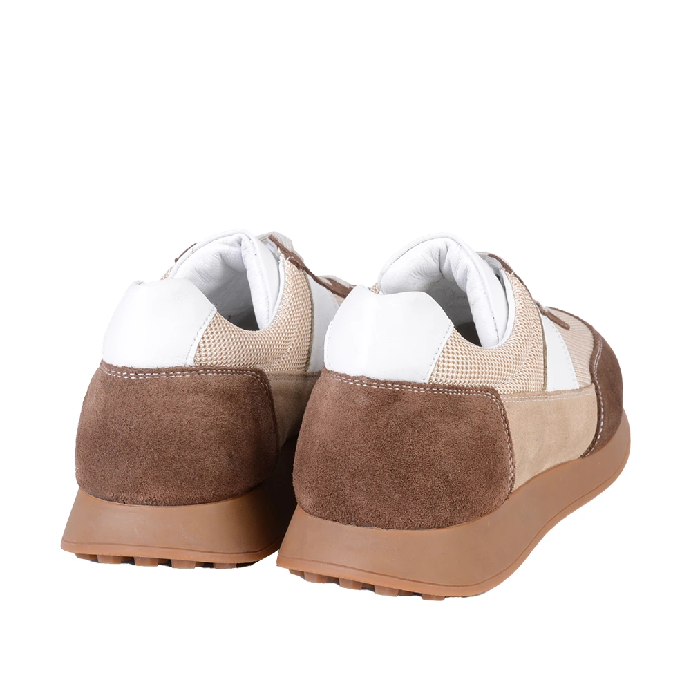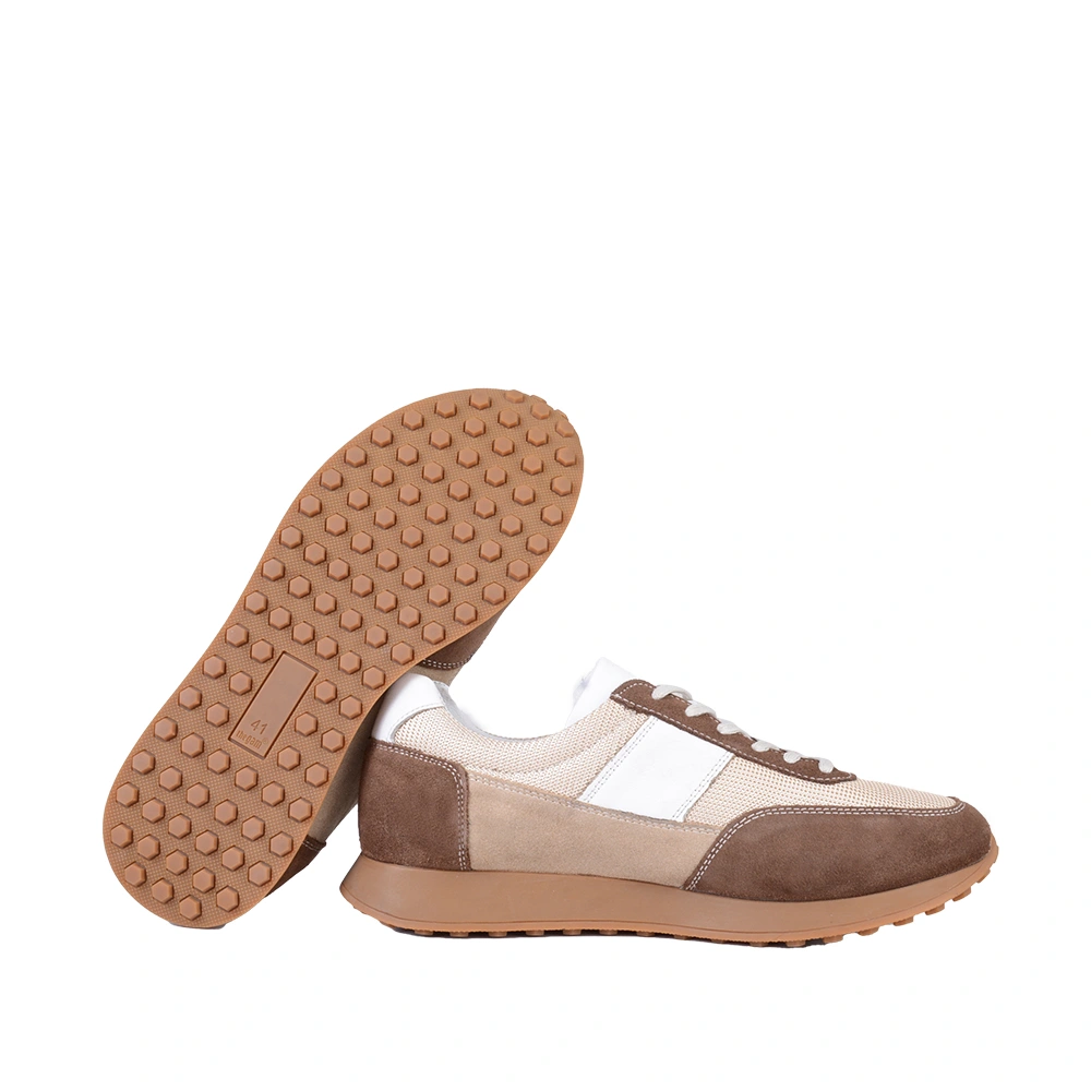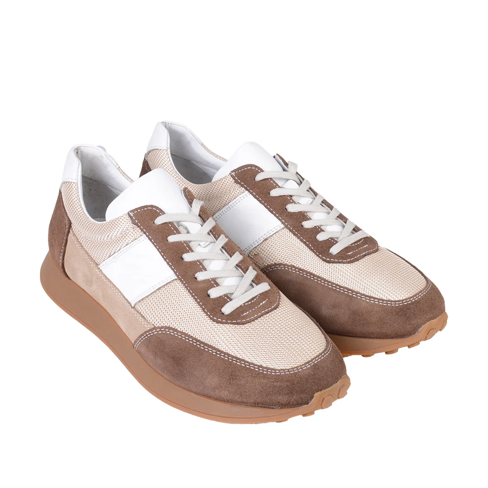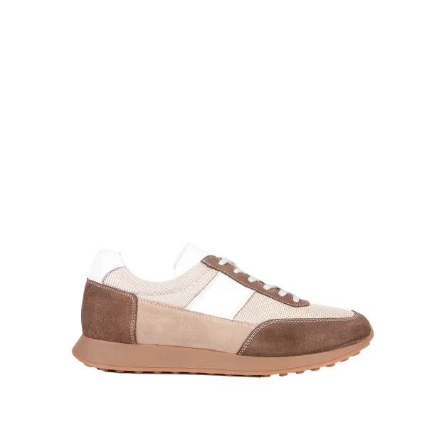 یکی از سری کفش های مورد علاقهی آقایان اسپرتپوش، کفش های ونس چرمی است که ظاهری زیبا و کژوال در استایل شما ایجاد میکند. این کفش ونس مردانه با رویهی ترکیبی از چرم، جیر و پارچه در یک رنگبندی کرم قهوهای، جلوه ای زیبا در استایل شما ایجاد خواهد کرد. رنگ های نود و روشن موجود در این کفش، آن را به یک گزینهی مناسب هم برای استایل های پاییزی و هم تابستانی تبدیل کرده است. این کفش در کنار شلوار جین آبی رنگ یا حتی شلوار های پارچهای رنگ روشن به شدت جذابتر خواهد شد. زیرهی نرم و راحت آن باعث شده تا مناسب برای فعالیت های روزمره، استفاده طولانی مدت و تیپ های کژوال باشد.