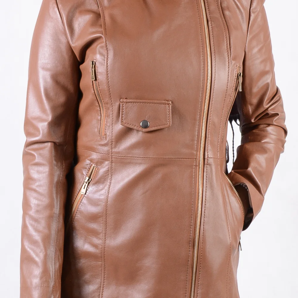 کت چرم زنانه دراتی مدل سوفیا یکی از محبوب ترین آیتم های فصول سرد چرم دراتی است که با دوخت با کیفیت، چرم طبیعی گاوی و استایلی کژوال جلوه ای زیبا و منحصر به فرد دارد. کت چرم طبیعی سوفیا با رنگ قهوه ای عسلی مناسب برای خانم هایی است که میخواهند کیفیت را در کنار زیبایی به تن کنند.