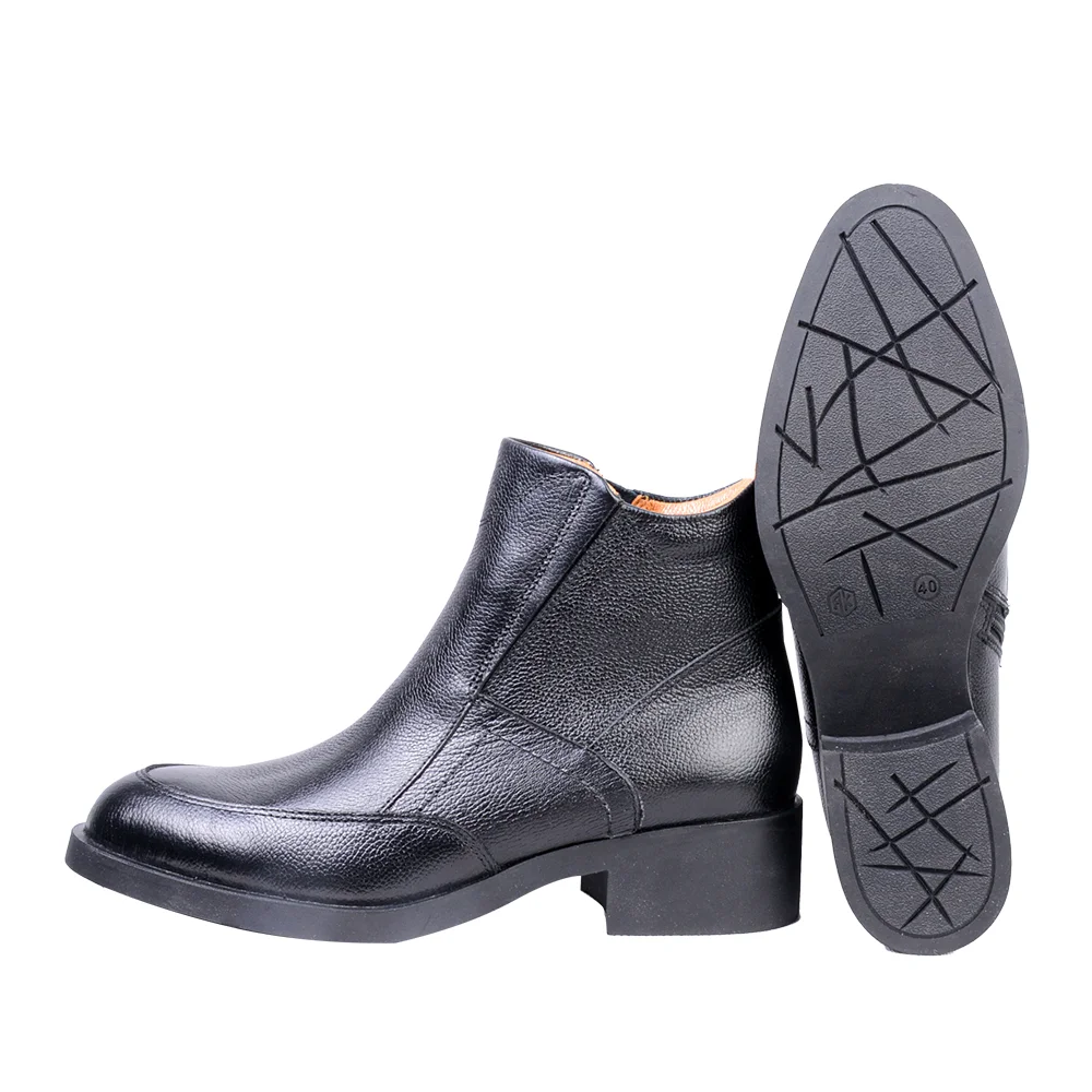 نیمبوت چرم طبیعی دراتی، دوخته شده از چرم طبیعی گاوی اصل، آستری از چرم بزی و خز همراهی گرم در کنار شما، در روز های سرد و بارانی پاییز و زمستان خواهد یود. تزیینات دوختی روی این بوت زیبایی و جلوه ی استایل شما را چند برابر میکند. زیپ کنار این بوت، هم پوشیدن آن را برای شما راحت تر میکند و هم مانع از شکستگی چرم کفش میشود. برای داشتن استایلی زیباتر با این کفش می توانید آن را با شلوار مام استایل، کیف و کت چرم طبیعی دراتی استفاده کنید.