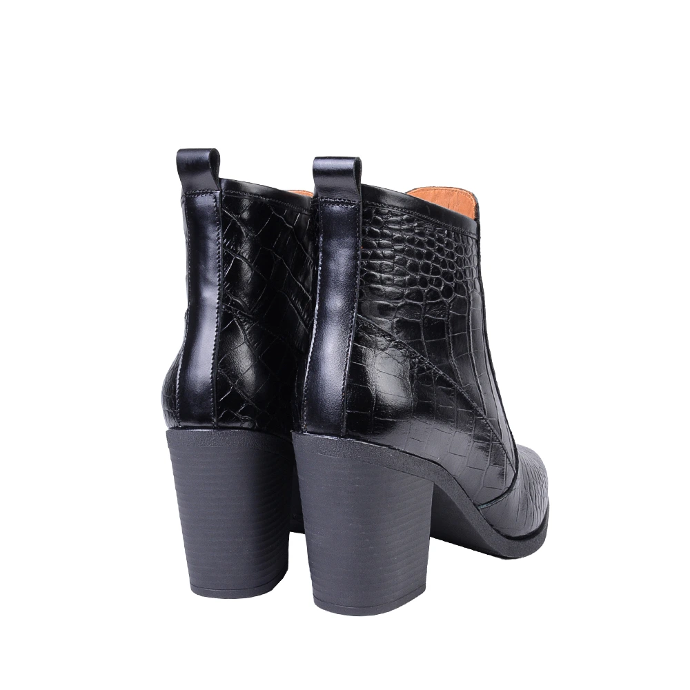 بوت و نیمبوت از دسته کفش هایی هستند که معمولا در روزهای بارانی و برفی کاربرد دارند اما نیم بوت تمام چرم ۷۴۲، با طراحی شکیل، منحصر به فرد و خاص خود به یک گزینهی عالی برای استفاده در موقعیتهای رسمی و مجالس تبدیل شده است و همچنین انتخاب بانوان خوشپوشی است که همیشه به دنبال درخشش هستند. بافت کروکوی چرم این محصول، دلیل اصلی جذابیت و وجه تمایز آن با سایر بوت هاست که موجب شده تا همانند آن را بهراحتی پیدا نکنید. دوام و ماندگاری چرم طبیعی گاوی نیز بر هیچکس پوشیده نیست حال اگر در کنار آستری از چرم بزی و خز استفاده شده باشد، گرما و تنفسپذیری آن نیز تضمین میشود. پاشنهی ۸ سانتی این مدل، میتواند نشانه ای از قدرت و جسارت شما باشد.