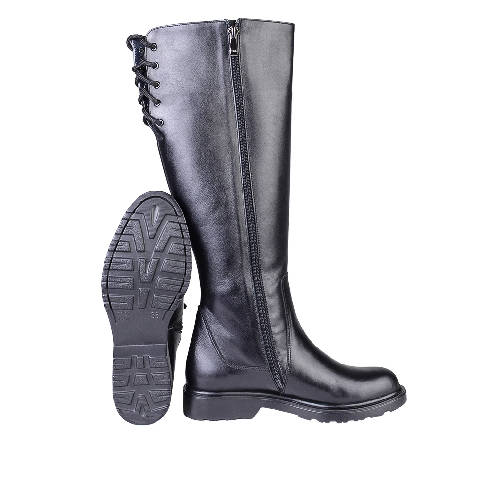 بوتهای بلند علاوه بر جلوهای خاص و شیک، از پای شما در برابر سوز و سرمای زمستان نیز محافظت میکنند و نهایت لذت قدم زدن در روزهای برفی و بارانی را به ارمغان میآورند. بوت بلند پشتبندی زنانه، نه تنها یک انتخاب عالی برای بانوان خوشاستایل است بلکه میتواند یک بوت مناسب برای سوارکاری نیز باشد. از زیبایی ظاهری این کفش میتوان به بند های قابل تنظیم ضربدری در پشت بوت، پاشنهی ۳ سانتی با فرم گرد و مربعی و ساق بلند آن اشاره کرد که در کنار یک کت چرم طبیعی، استایلی منحصر به فرد را رقم می زند.