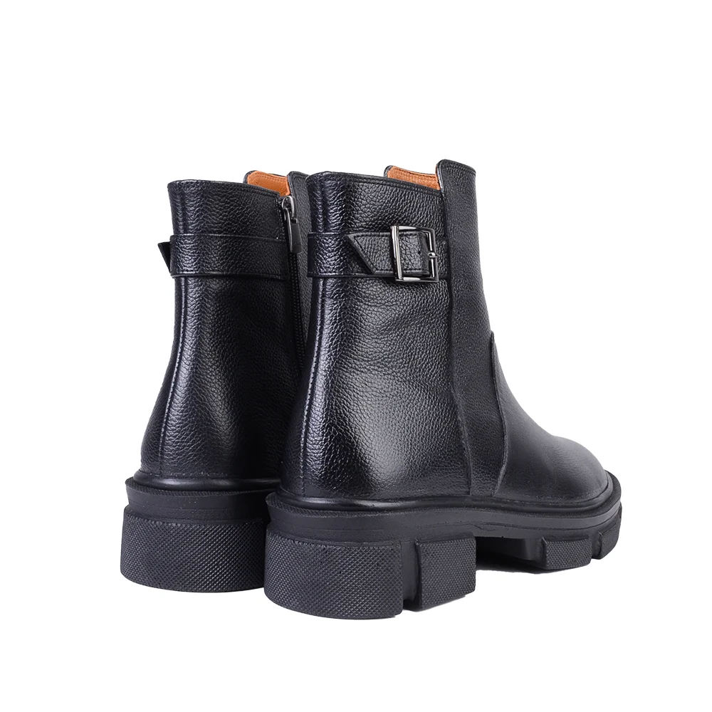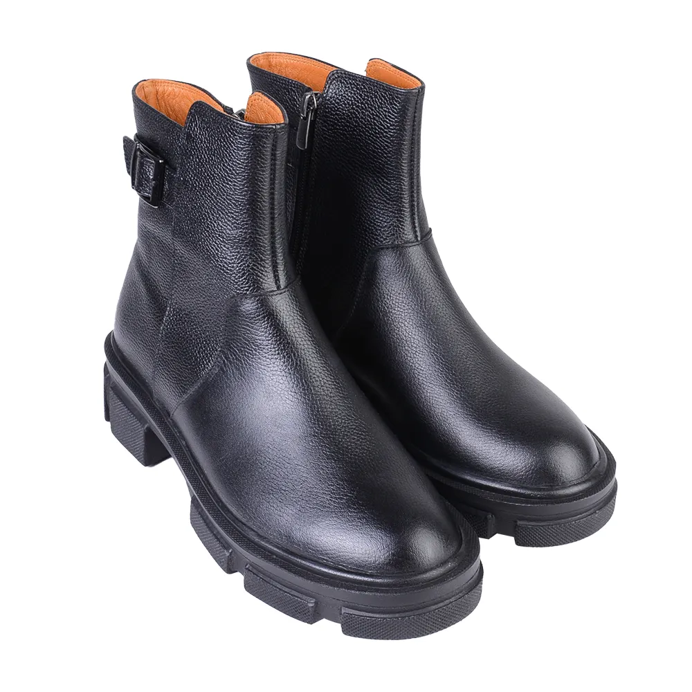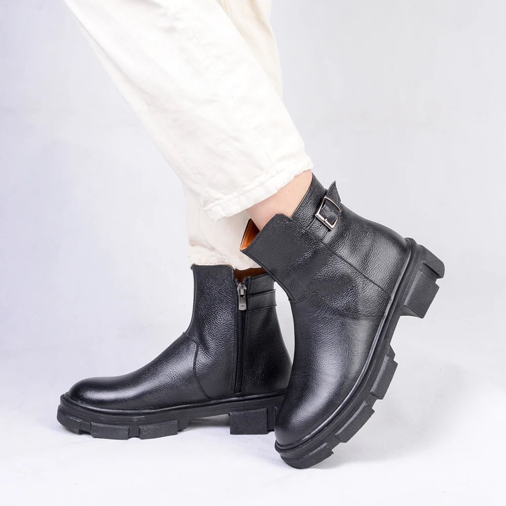 بوت و نیم بوت یکی از لازمه های استایل بانوان در روز های سرد پاییز و زمستان میباشد که میتوانید با انتخاب یک بوت چرم طبیعی گاوی خیال خود را بابت راحتی، زیبایی، دوام و ماندگاری آن راحت کنید. بوت تمام چرم زنانه کد ۶۰۰۳، با رویهای از چرم طبیعی نوع فلوتر و آستری از چرم بزی و خز همراه شما در فصول سرد سال خواهد بود. این بوت چرم با سگکی زیبا در کنار آن جذابیت استایل شما را چند برابر میکند. ارتفاع لژ آن به همراه زیرهی مقاوم و ضد سایش بسیار عالی برای روز های برفی زمستانی است. همچنین این بوت در کنار کت های چرم طبیعی یک استایل کژوال خاص و لوکس میسازد که نگاه ها را محو خود میکند.
