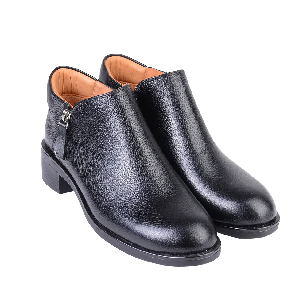 بوت و نیم بوت یکی از لازمه های استایل بانوان در روز های سرد پاییز و زمستان میباشد که میتوانید با انتخاب یک نیمبوت چرم طبیعی گاوی خیال خود را بابت راحتی، زیبایی، دوام و ماندگاری آن راحت کنید. نیم بوت دو زیپ چرم زنانه کد ۲۰۳، با رویهای از چرم طبیعی نوع فلوتر و آستری از چرم بزی و خز همراه شما در فصول سرد سال خواهد بود. این نیم بوت چرم دارای دو زیپ در طرفین است که هم جذابیت آن را چندین برابر و هم باعث راحتی در هنگام پوشیدن کفش میشود. طراحی ساده و کلاسیک این کفش موجب شده تا گزینهای مناسب حتی برای استایل های رسمی و اداری نیز باشد.