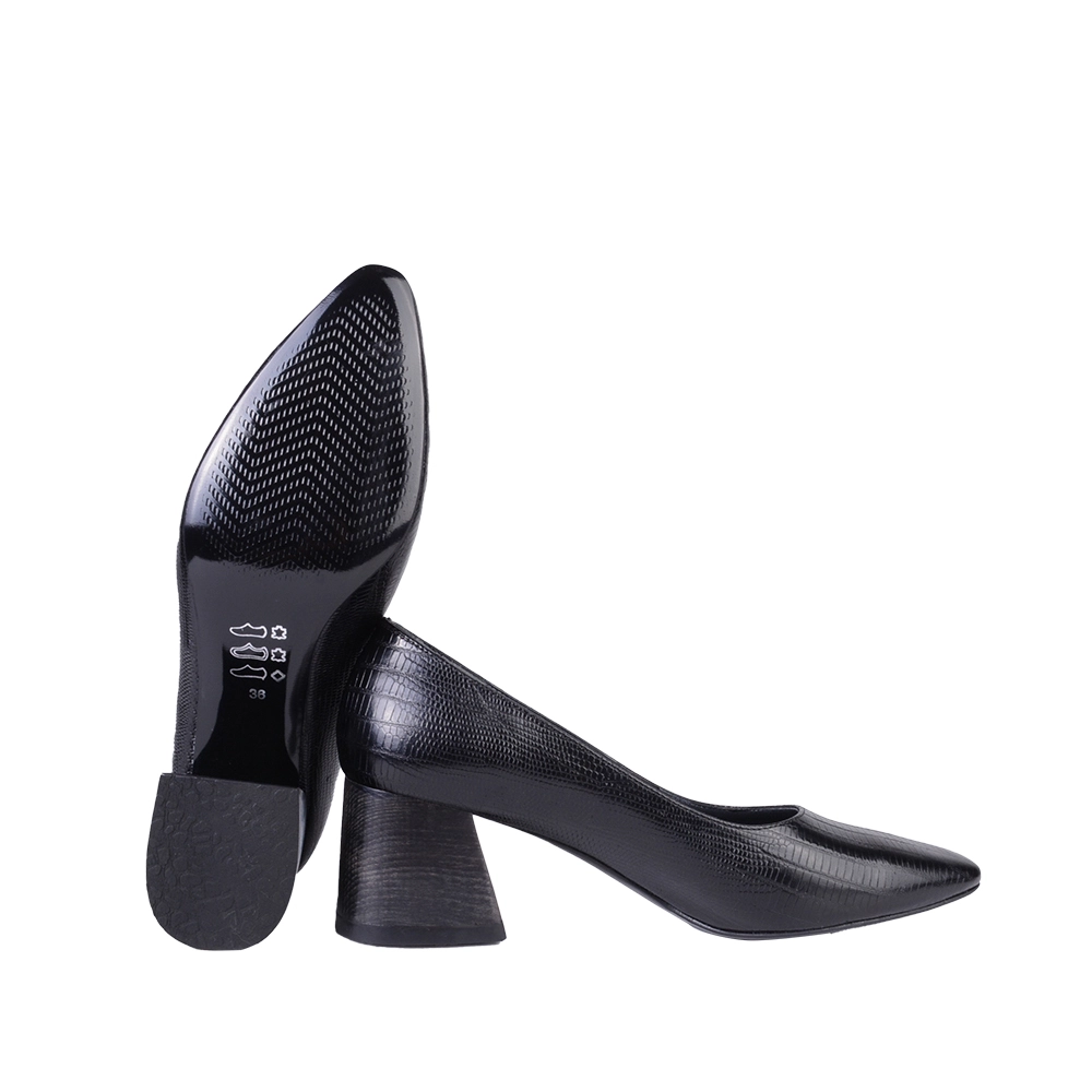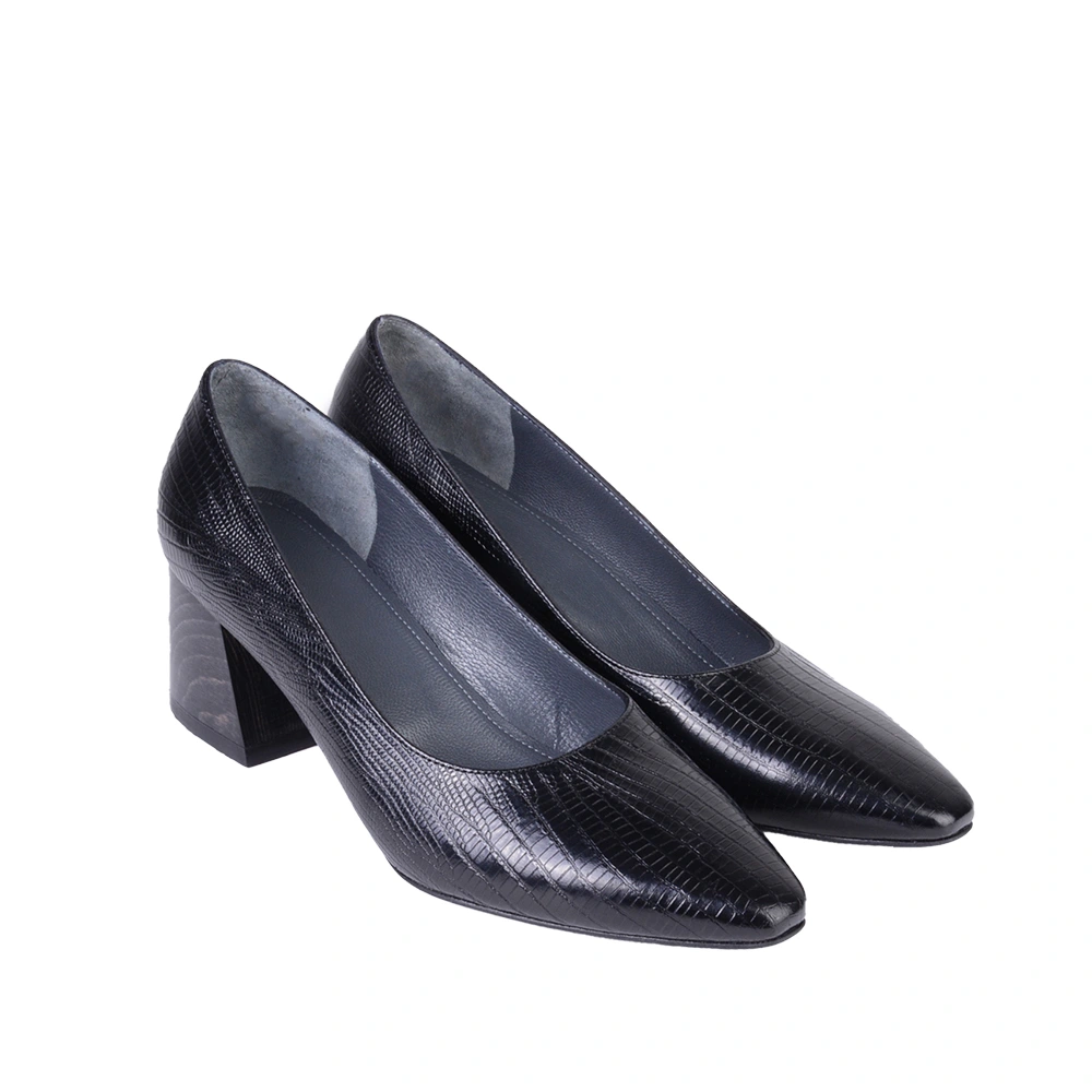 اگر به دنبال یک کفش با تمامی مولفه های لازم برای یک استایل زنانه خاص و لوکس میگردید، قطعا کفش چرم زنانه کد ۲۰۴۰، یک انتخاب عالی برای شما خواهد بود. رویهی چرم گاوی از نوع لیزارد جلوه و زیبایی این کفش را چند برابر کرده و نوع چرم آن حس لاکچری بودن در استایل شما ایجاد میکند. ارتفاع پاشنه ۵ سانتی متری با طراحی پهن آن، راحتی این کفش را تضمین میکند. در کنار این کفش، داشتن یک کیف چرم لیزارد نگاه ها را به سمت شما جذب خواهد کرد. جهت مراقبت و نگهداری بهتر از این محصول، می توانید از روغن ها و واکس های مخصوص چرم طبیعی استفاده کنید.