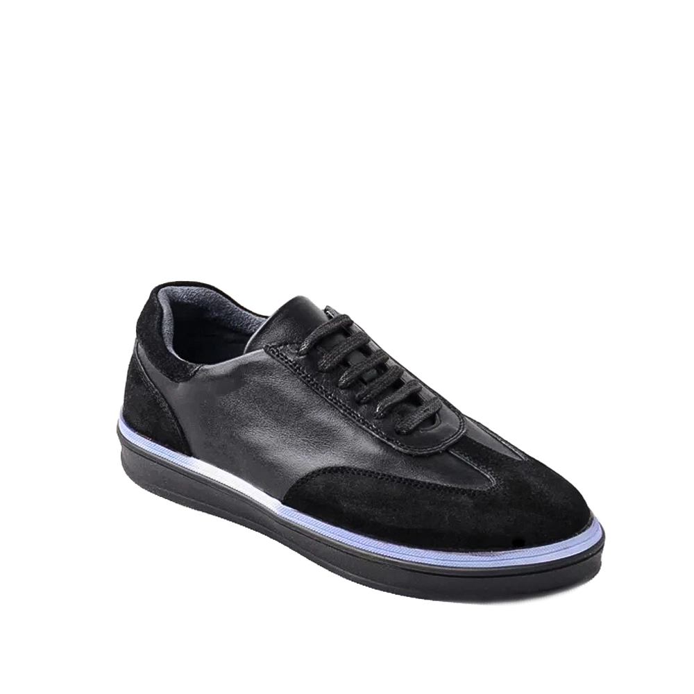 این کتانی از ترکیب چرم طبیعی گاوی و جیر نرم ساخته شده است؛ چرم روی بدنه باعث استحکام و شیکتر شدن ظاهر کفش میشود، در حالی که بخشهای جیر حس نرمی و سبک بودن بیشتری به پا میبخشند. لایه داخلی نرم، زیرهی سبک و طراحی ارگونومیک، باعث شده این کفش هم برای پیادهروی و هم برای استفاده طولانیمدت در طول روز مناسب باشد.